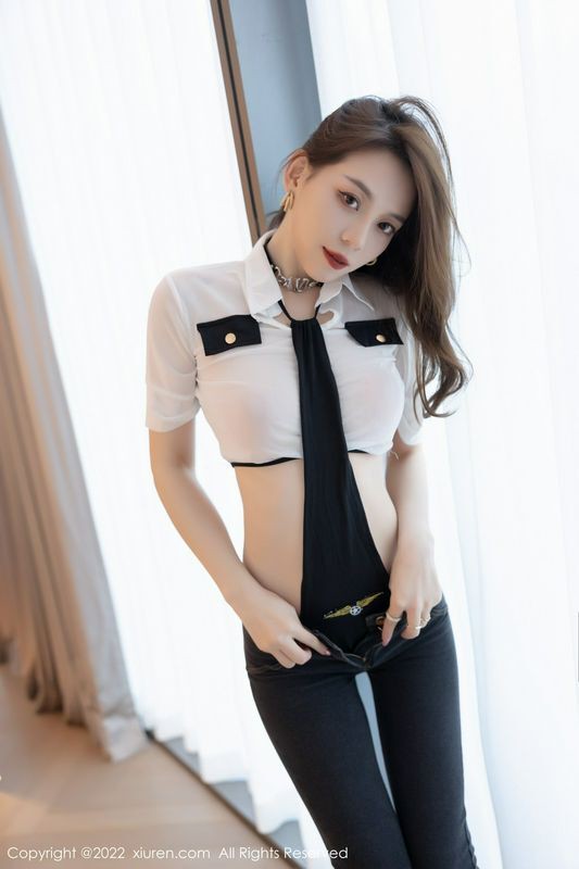 模特萌汉药baby白色制服黑内衣